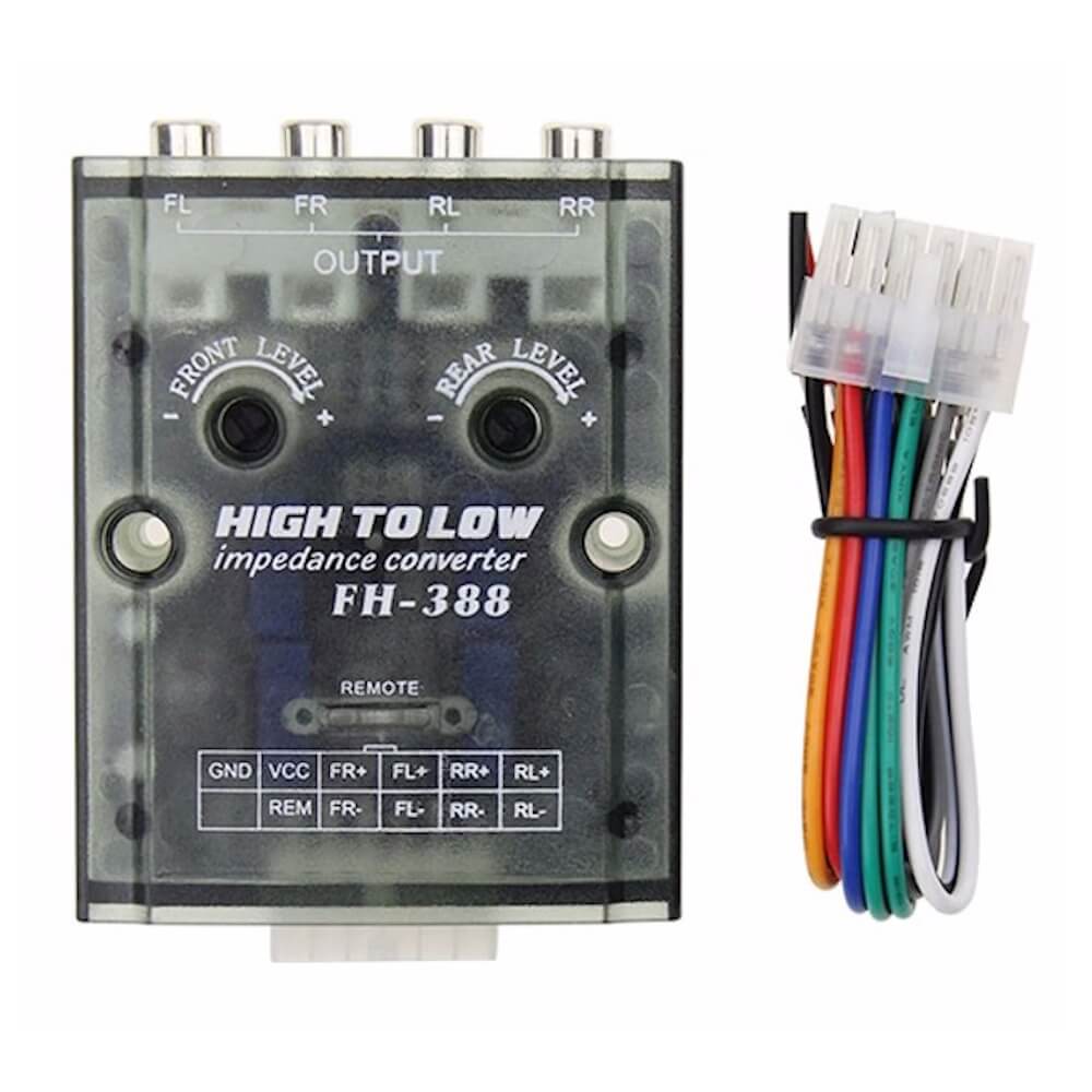 Преобразователь сигнала высокого уровня (HI-input) в низкий (RCA), для подключения усилителей мощности к головным устройствам.
