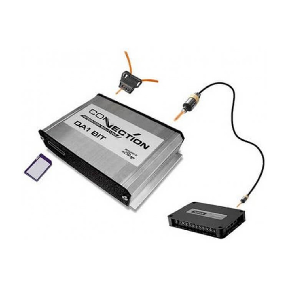 Совместимость DA1 Bit с конкретной маркой/моделью автомобиля зависит от версии программной “прошивки” (firmware) и не требует замены самого устройства. Нужная версия “прошивки” доступна для скачивания с вебсайта Connection и переносится в DA1 Bit при помощи SD-карточки flash-памяти. Там же можно ознакомиться со списком совместимых моделей автомобилей (Compatibility List). На сегодня список включает модели от Audi, BMW/MINI, Mercedes (прошивка по умолчанию) и Porsche разных лет выпуска и разных версий штатной комплектации, и будет постоянно расширяться со временем. Разъемы 1 MOST in, 1 MOST out. Цифровые аудиовыходы (S/PDIF) 1 TosLink (оптический). Разрешение выходного аудиосигнала (PCM Stereo) 16 бит / 44,1 или 48 кГц (зависит от параметров штатной аудиосистемы). Поддержка сменных носителей информации SD card.