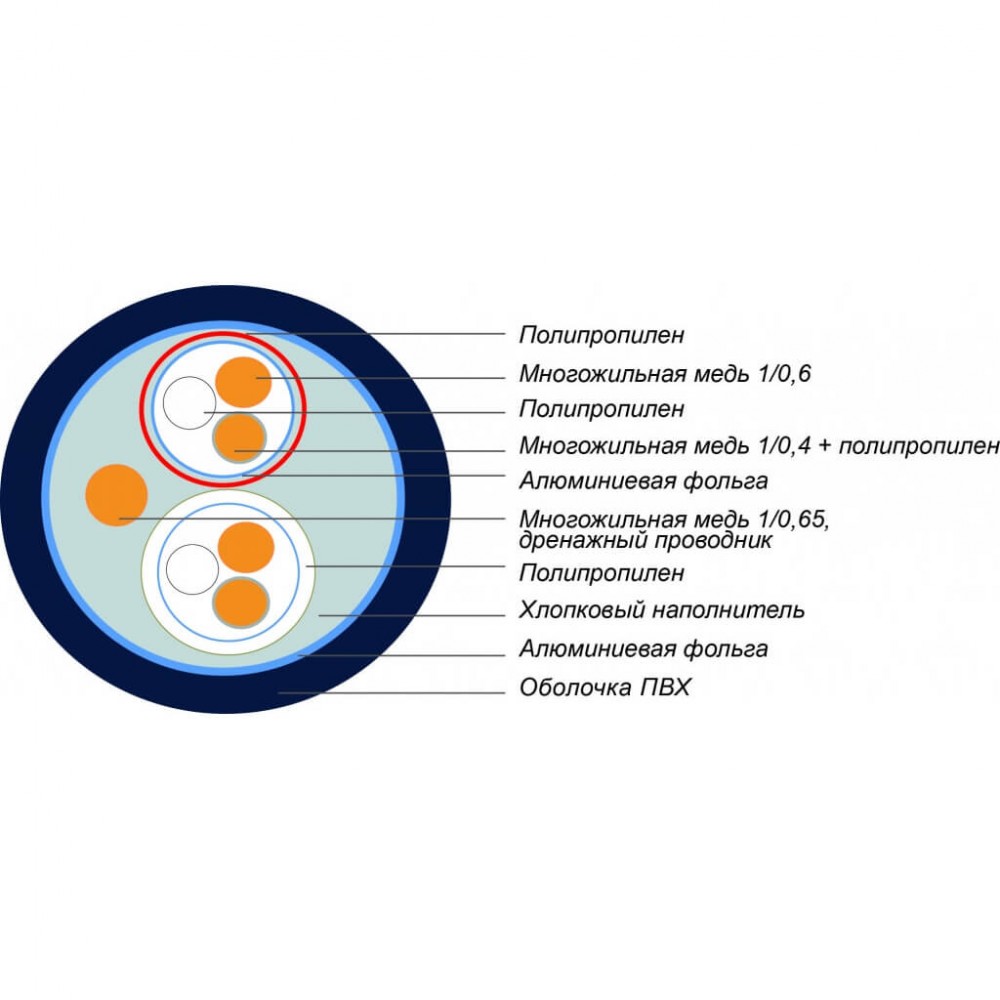 Синхронизированный по времени кабель акустической системы с воздушной изоляцией.