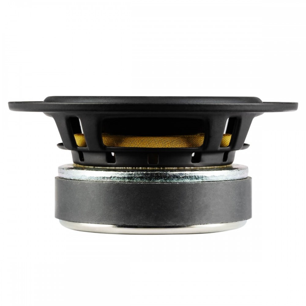 Многослойный диффузор из бумаги и стекловолокна диаметром 80 мм (3 дюйма) со специальным покрытием, металлическая корзина с порошковым покрытием и вентиляционными отверстиями. Высококачественные клеммы разъема 2,8 / 4,8 мм. Т-образный джойстик, изготовленный на станке с ЧПУ, с большим внутренним диаметром для наилучшей вентиляции без шума от потока воздуха. Мягкий купол для нейтрального звучания. Импеданс 4 Ом, номинальная/музыкальная мощность: 20 / 30 Вт. Внешний диаметр 95 мм, диаметр монтажного отверстия 74 мм, глубина установки 38,9 мм. В комплекте защитная решетка динамика с кольцами и монтажные принадлежности. Производство и разработка: Сделано в Германии.