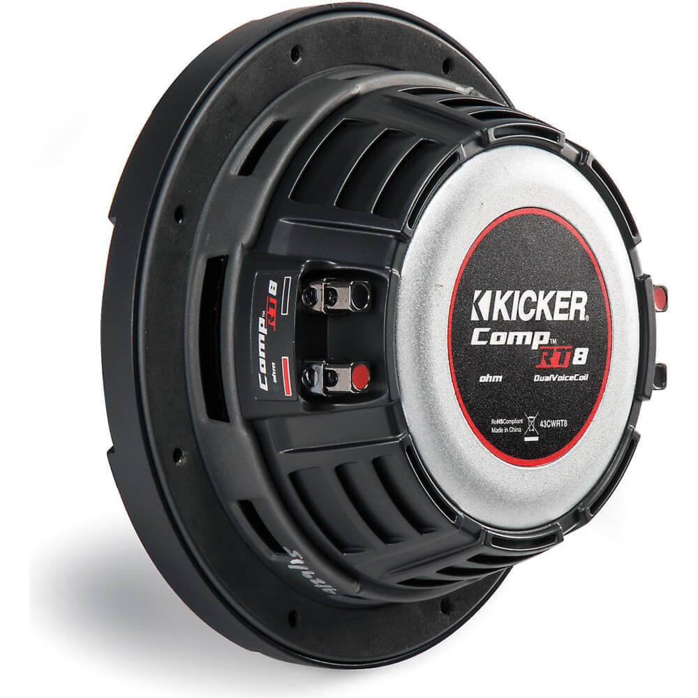 Несмотря на небольшую монтажную глубину, сабвуферы CompRT выпускаются с двойными звуковыми катушками 1 или 2 Ом и идеально сочетаются без потери мощности с моно усилителями KICKER серии КХ в автомобиле или грузовике, или с небольшими усилителями KICKER серии РХ без проблем работающих на низкоомную нагрузку. Серия CompRT занимает нишу, оставленную предыдущей серией CompVT, сабвуферы этой серии созданы для качественного баса, где пространство ограничено. Если слышишь годный бас из-за сиденья в компактном автомобиле или в кофрах на мотоцикле, будь уверен — это Kicker с его фирменным басовым почерком.