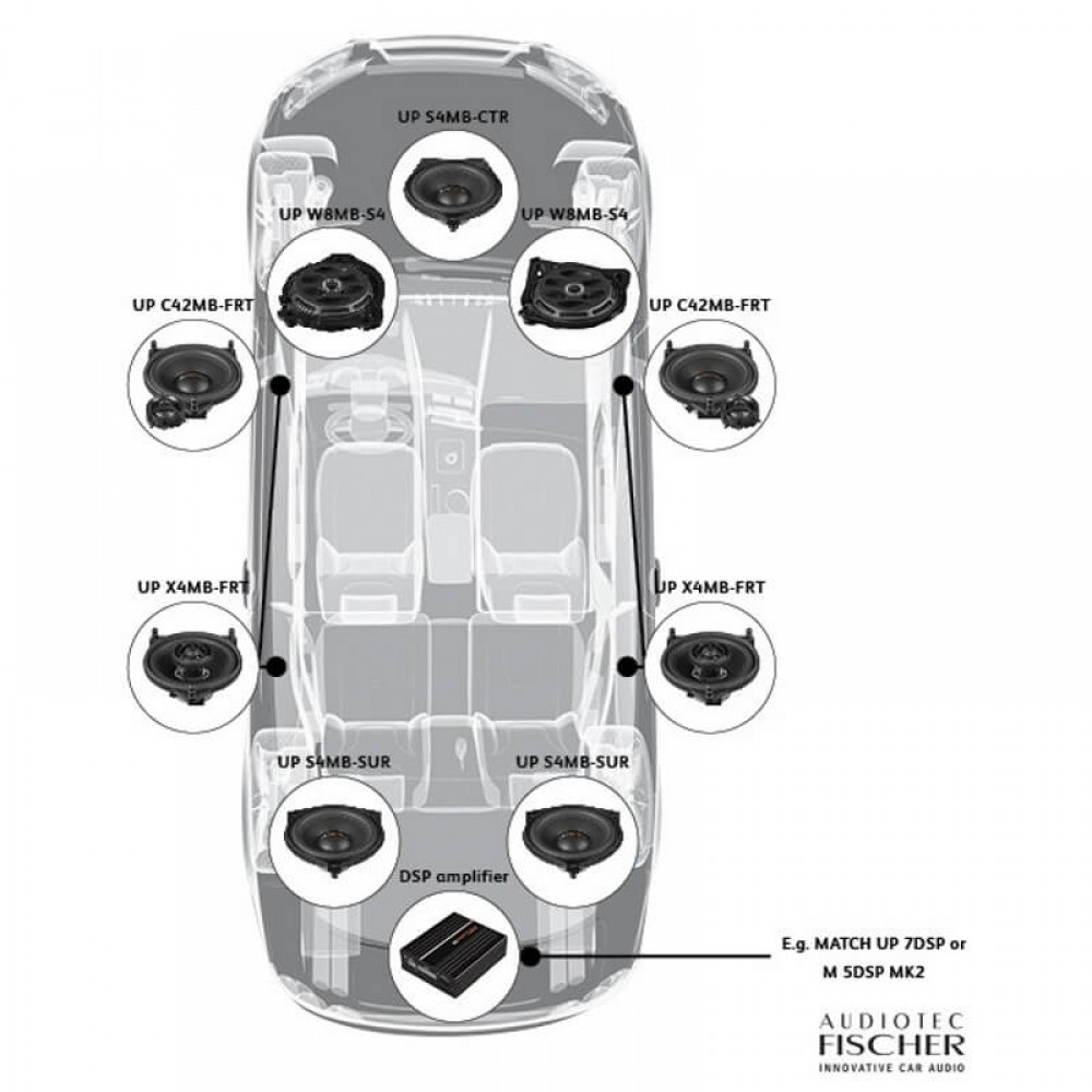 Высококачественные немецкие акустические системы MATCH позволяют заменить штатную акустику в автомобилях Mercedes, BMW и VW без особых усилий и доработок, при этом качество звучания штатной аудиосистемы Вашего автомобиля улучшится в несколько раз! Бренд MATCH принадлежит немецкой компании Audiotec Fischer, которая завоевала себе известность благодаря производству высококачественных акустических систем для автомобильного и домашнего использования под брендами Helix и Brax еще в 90е годы и удерживает лидирующие позиции и по сей день.