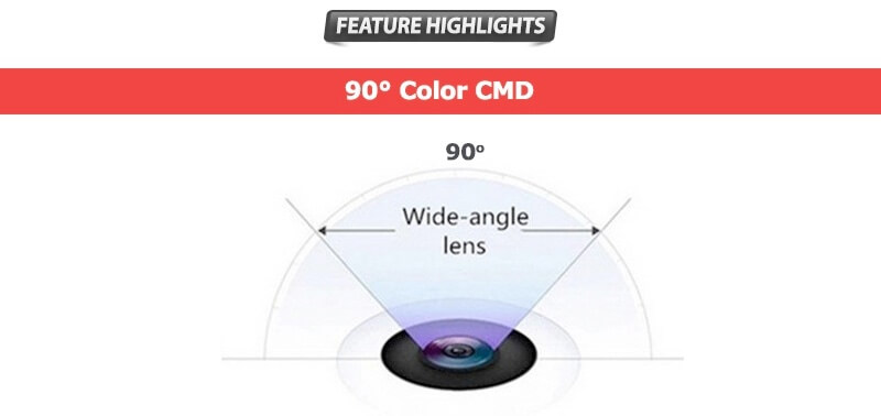 Угол обзора камеры по вертикали и по горизонтали равен 90°. Датчик изображения устройства (CMD) камеры заднего вида относится к категории активных пикселей. Он обладает рядом уникальных функций, таких как высокая плотность пикселей, высокоскоростное функционирование, низкое энергопотребление и приспосабливаемость к различным режимам сканирования. Кроме того, цветная CMD-камера захватывает и проецирует темные области и ярко освещенные области легко и четко. ИК-подсветка формирует экспозицию почти мгновенно, стоит вам попасть в область с низкой освещенностью.
