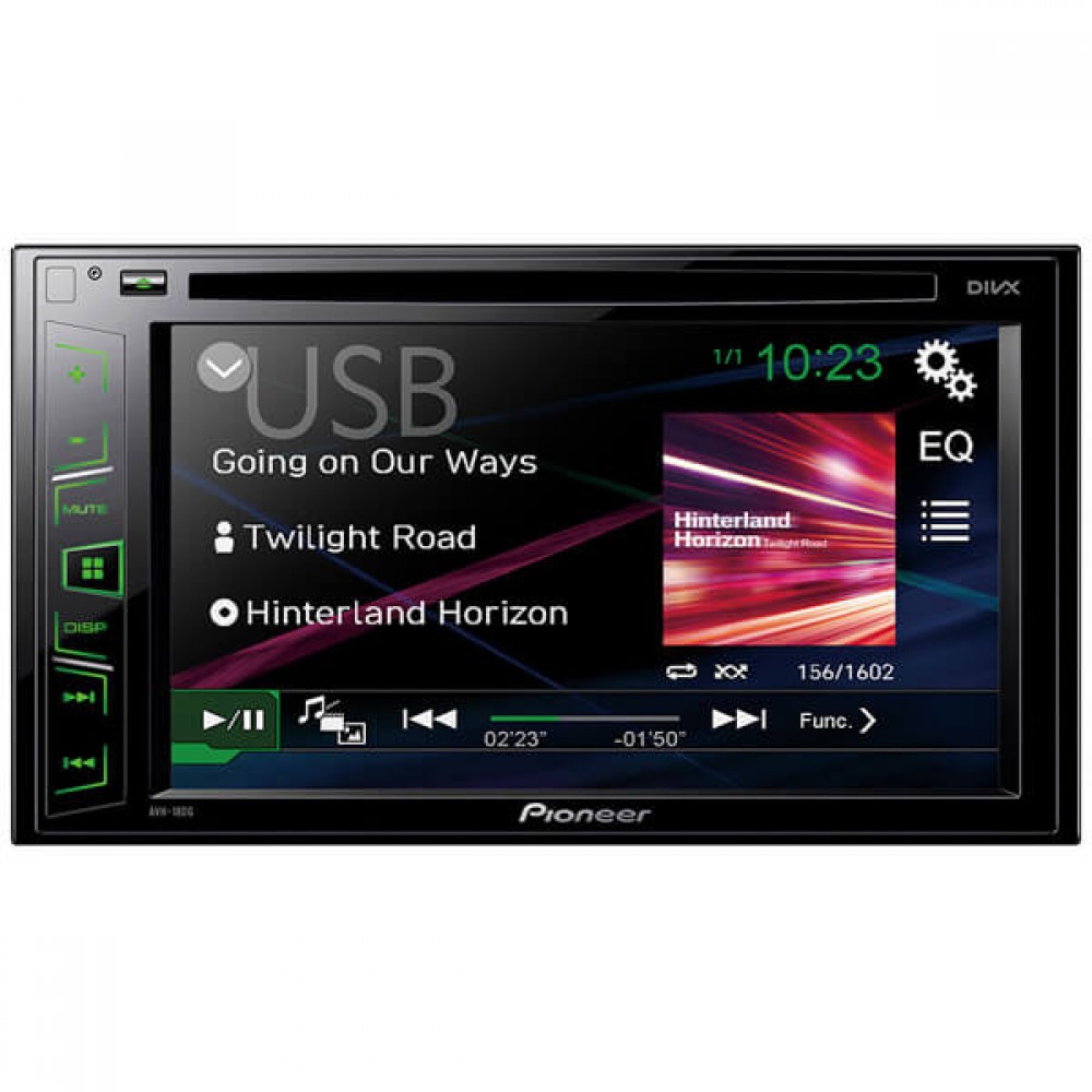 Автомагнитола Pioneer AVH-180G это бюджетное мультимедийное решение с DVD приводом от компании Pioneer. Внешне аппарат смотрится строго и солидно. Большую часть панели занимает сенсорный экран, слева расположены несколько основных кнопок управления, которые совмещены на одной пластиковой детали.