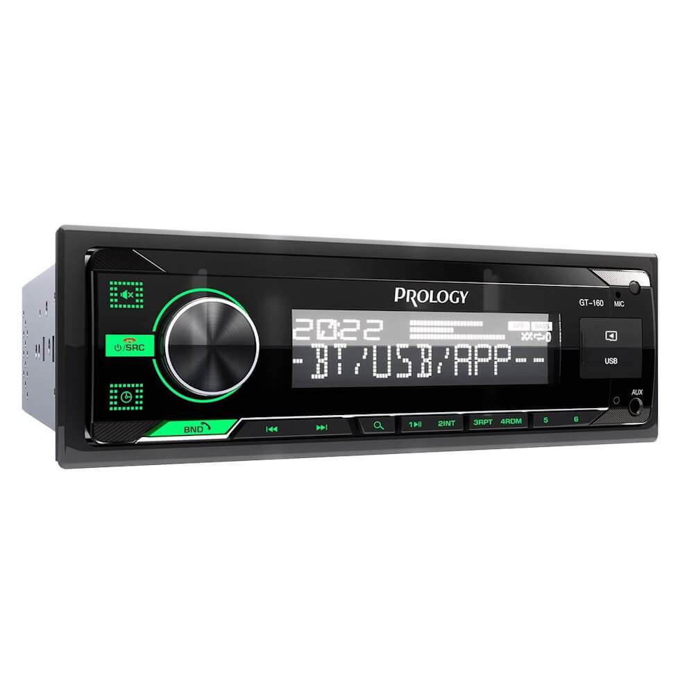 PROLOGY GT-160 — FM SD/USB ресивер с поддержкой беспроводной технологии Bluetooth — это недорогая современная и широкофункциональная автомагнитола стандартного установочного размера 1DIN с минимальной монтажной глубиной в 85 мм.