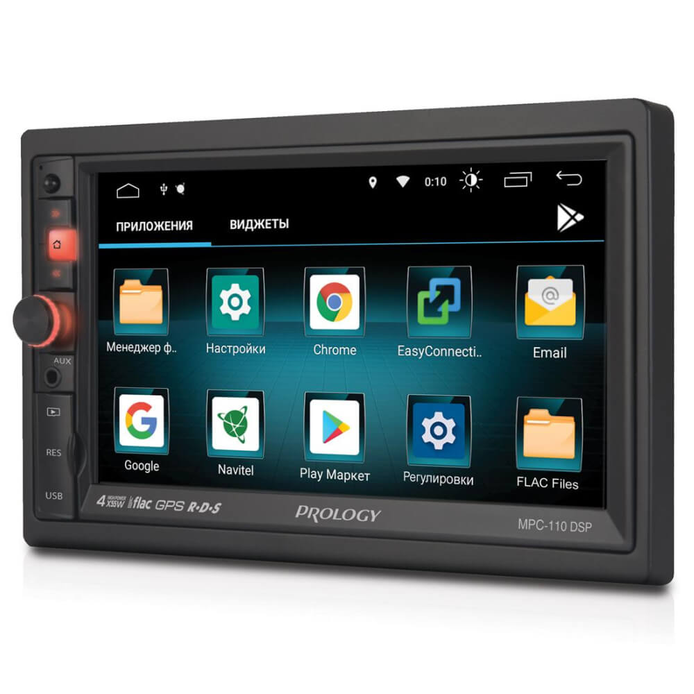 Мультимедийный навигационный центр со встроенным аудиопроцессором PROLOGY MPC-110 DSP на операционной системе ANDROID® 8.0 — это универсальная автомагнитола для стандартного монтажного размера 2DIN, которая позволяет пользователю принимать радиостанции в диапазонах FM/AM волн, воспроизводить самые популярные типы медиафайлов, записанных на карты памяти USB/microSD. Головное устройство PROLOGY MPC-110 DSP обеспечивает работу с навигационным программным обеспечением Навител Навигатор, управление мобильным телефоном через интерфейс Bluetooth, работу c Интернетом посредством подключения к сети Wi-Fi, а также передачу звука с внешних источников.