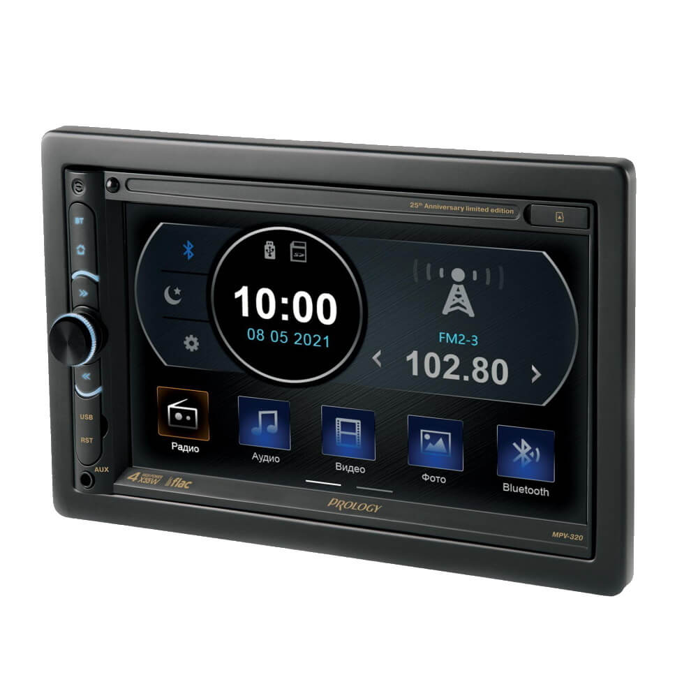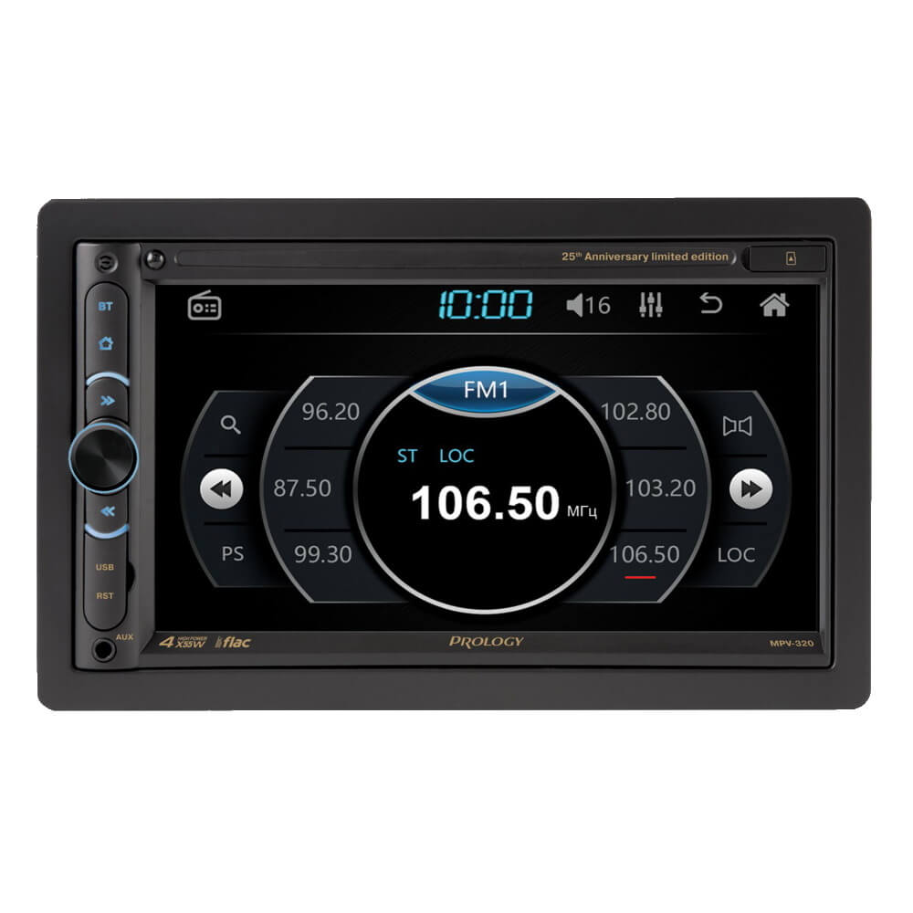 Автомобильный мультимедийный центр PROLOGY MPV-320 монтажного размера 2DIN обеспечивает прием радиостанций в диапазоне FM / УКВ, воспроизведение медиафайлов, записанных на карты памяти USB / microSD, передачу звука с внешних источников, а также управление мобильным телефоном через интерфейс Bluetooth (version 4.2).