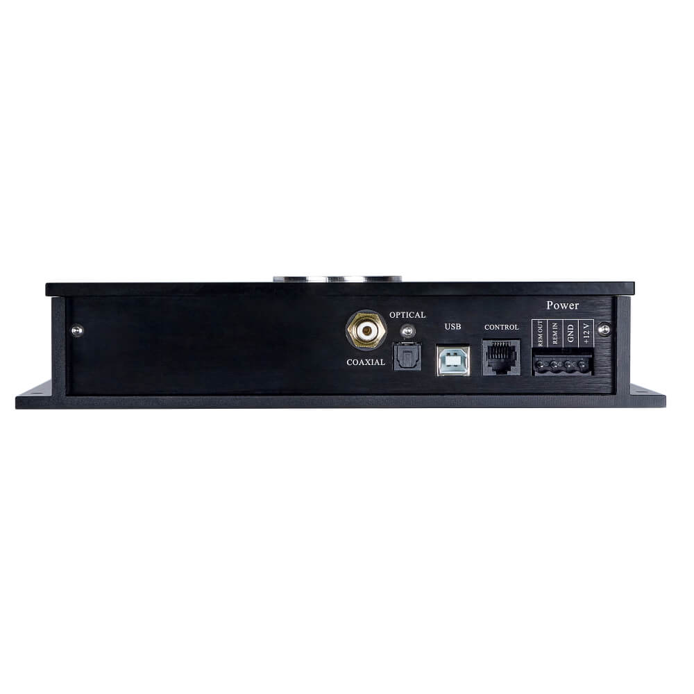 За обработку звукового сигнала отвечает мощный процессор от Analog Devices – ADAU1452. Все вычисления производятся в разрешении 192 кГц / 64 бит, что позволяет без потерь работать даже с форматами High Resolution Audio. Больше того, в Resolut A-DSP используются оригинальные оптимизированные алгоритмы, полнее раскрывающие возможности ADAU1452 и дополнительно повышающие точность вычислений. Столь бескомпромиссный подход позволил добиться сохранения высокого разрешения сигнала даже при сложных обработках внутри DSP.