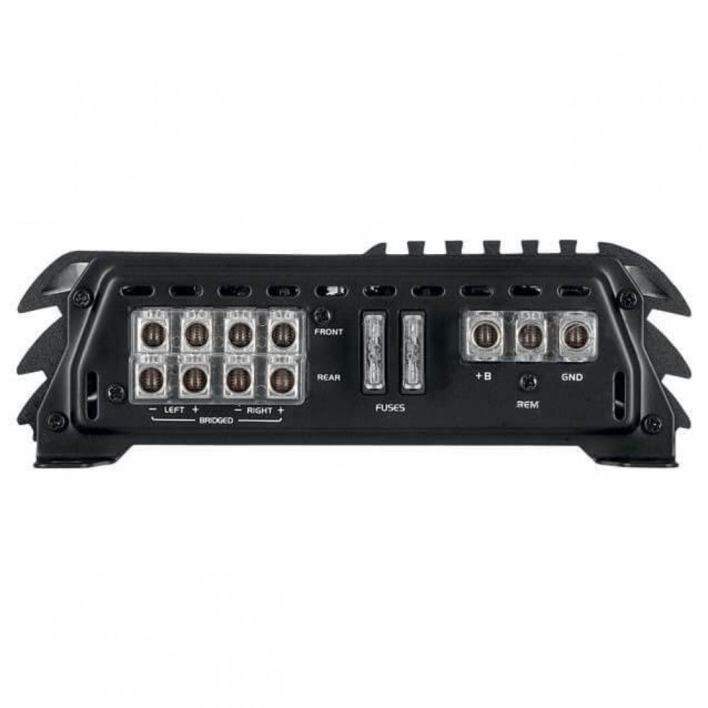 Четырехканальный DS 480 – 4 канала по 80 Вт на нагрузку 4 Ом, которые превращаются в 125 Вт на нагрузку 2 Ом, или в 250 Вт при мостовом включении. Этот усилитель обеспечен всеми необходимыми функциями: каждая пара каналов оснащена регулятором чувствительности, регулируемым бас-бустом до +18 дБ на частоте 45 Гц, и трехрежимным фильтром HP-FULL-LP с раздельными регулировками частоты среза от 50 до 250 Гц. Этот усилитель идеально подойдёт для создания системы фронт/тыл или популярной конфигурации фронт + саб.