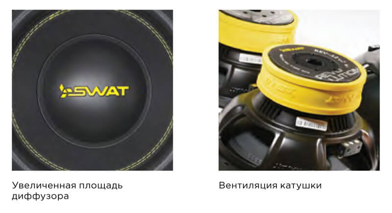 Калибры сабвуферных динамиков: 10”, 12”, 15”. Звуковая катушка: 2 х 2 Ом.