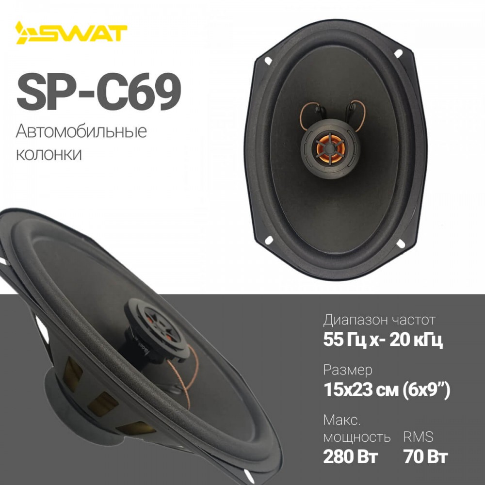 Swat SP-C69 имеет компактный дизайн, что делает его легким в установке в любом автомобиле. Она также оснащен широким частотным диапазоном, что позволяет вам наслаждаться яркими высокими и глубокими низкими звуками.