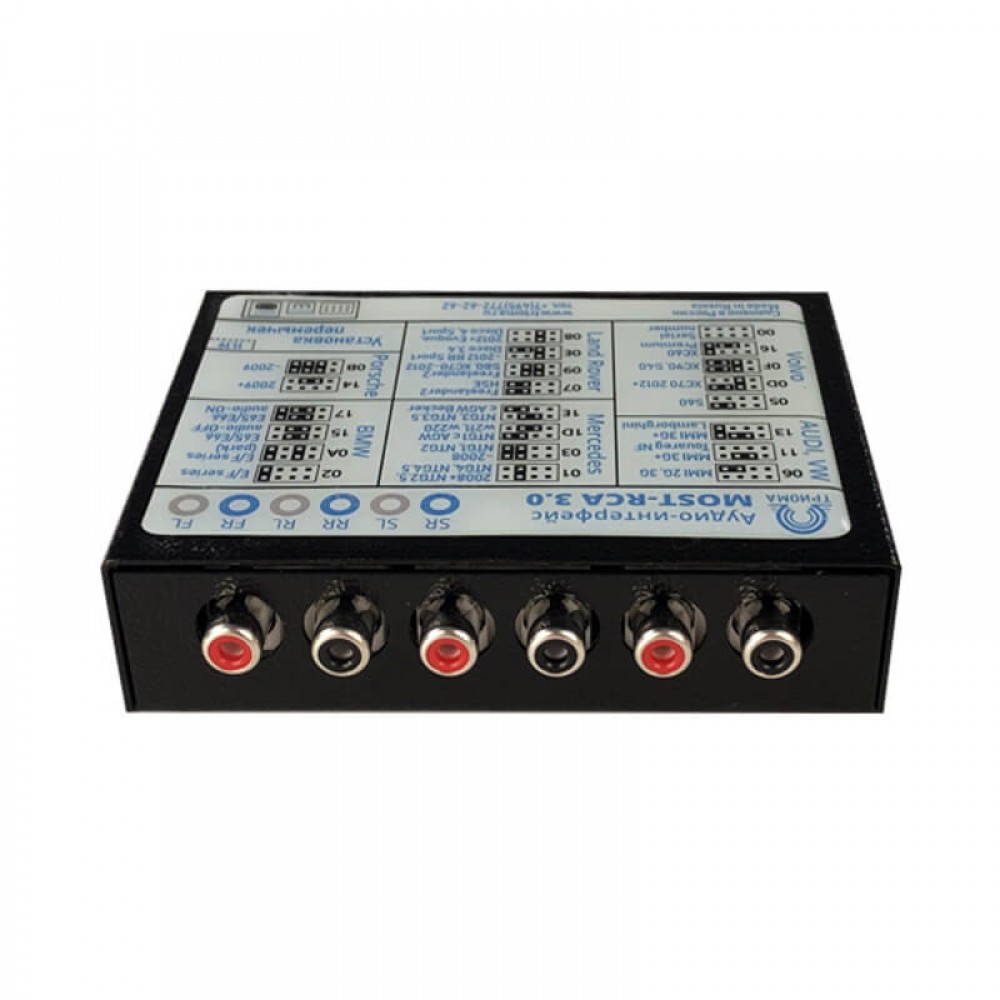 Адаптер предназначен для организации RCA (аналоговых) выходов в автомобильной аудиосистеме с оптической шиной MOST-25. Он позволяет использовать нештатный усилитель (усилители) вместо оригинального. Совместим с автомобилями с интерфейсом MOST-25 (~ 2002-2017)